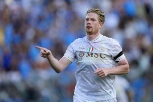 关于今天比赛为本队攻入两球的德布劳内