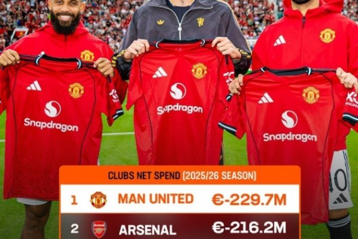 体育资讯08月13日讯 外媒LiveScore统计了夏窗目前为止欧洲足坛净支出最多的五支俱乐部,曼联、阿森纳破2亿欧领跑。