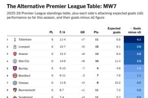 TA报道称,曼联本赛季英超场均预期进球数为2.05个,部分原因是姆伯莫和库尼亚的加盟,但射门次数(场均15.3次,联赛最高)也是一个因素。曼联的射门中很大一部分来自禁区外,这意味着它们会增加累计预期进球数,但通常质量不高。