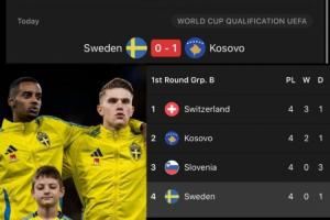 体育资讯10月14日讯 世预赛赛场,瑞典0-1不敌科索沃,瑞典无缘直接晋级世界杯。